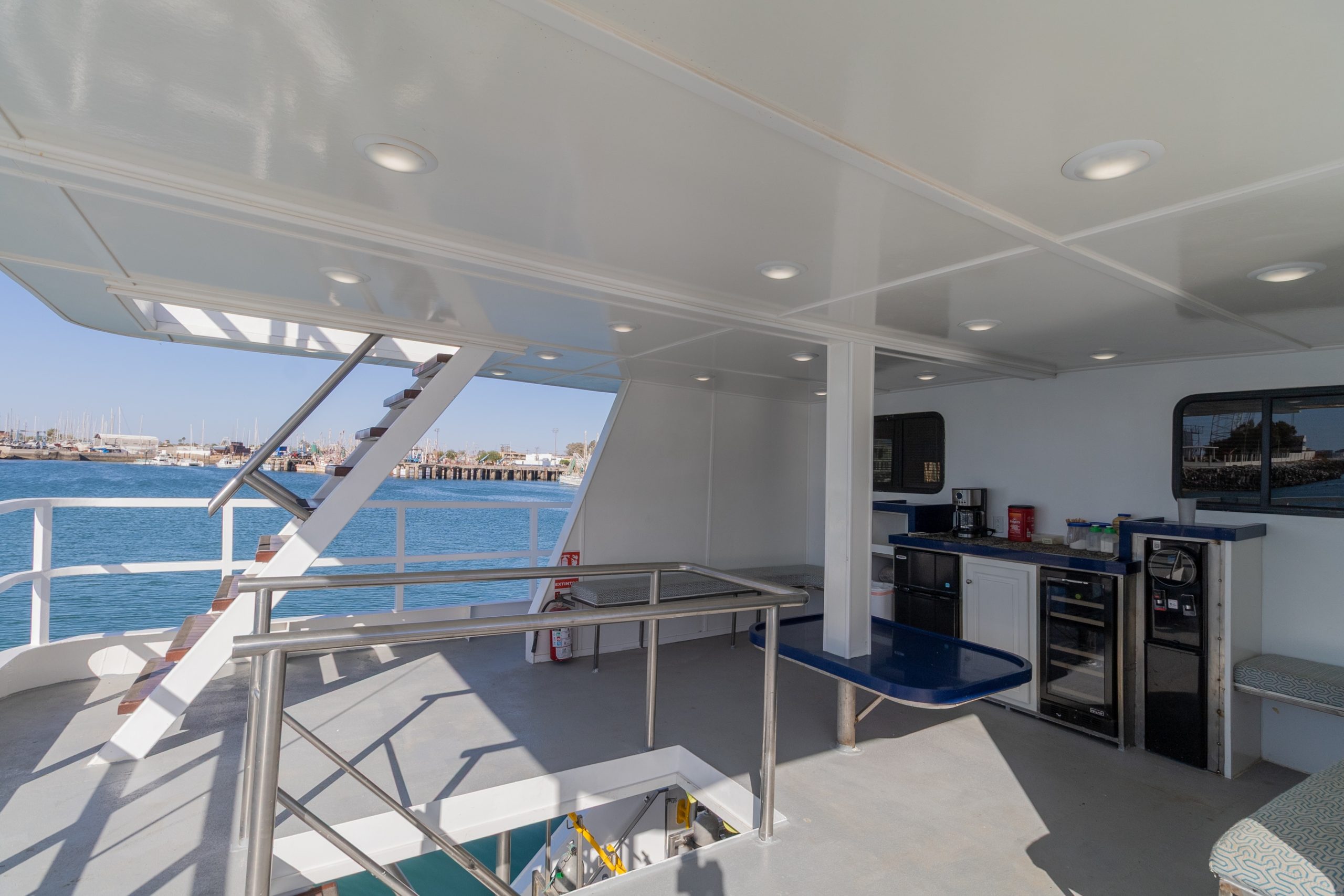 Navigation & Safety Facilities: Quino del Mar is fully Coast Guard–approved (both U.S. and Mexican) and is equipped with modern navigation and safety systems including radar, depth sounder, GPS, VHF/DSC/SSB radios, E.P.I.R.B. distress system, fishfinder, satellite & mobile phones and Starlink internet. Emergency equipment includes life vests, emergency rafts, fire alarms, fire extinguishers, fire detection and suppression systems, oxygen, first aid kits, bilge pump alarms, searchlights and emergency flares. All crew members are professionally trained in first aid, firefighting, emergency procedures and evacuation protocols, ensuring maximum safety for all on board.